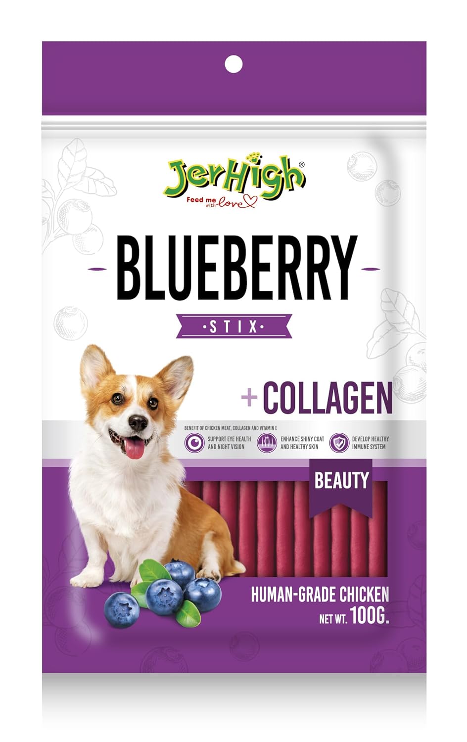 JerHigh Blueberry Stick Dog Treats with Real Chicken